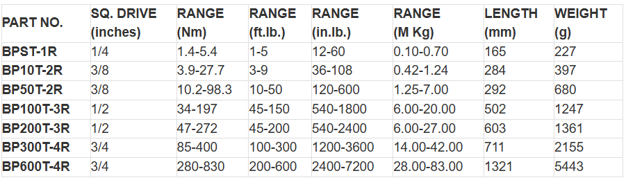 - Handle length proportioned to torque range of wrench for minimum user fatigue.