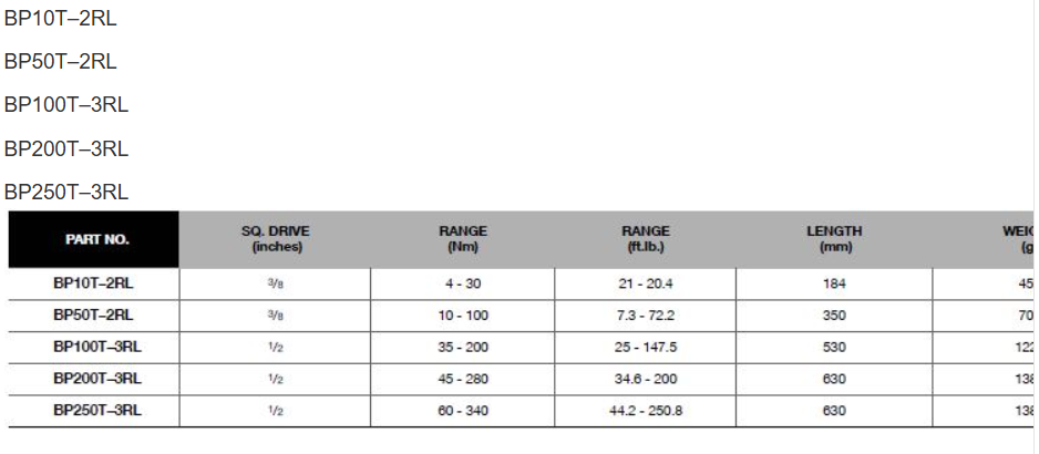 Torque Wrench, "L" Series Preset Click -Type