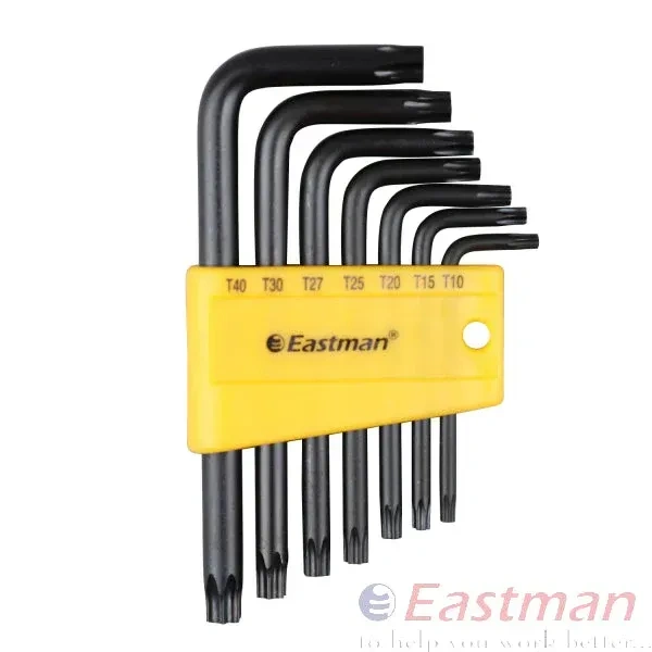 - Eastman 07Pcs Star allen key set short Pattern Set Includes Size :-T10, T15, T20, T25, T27, T30, T40, Fully Heat Treated 48-52 HRC. Sliding Plastic Box Packing