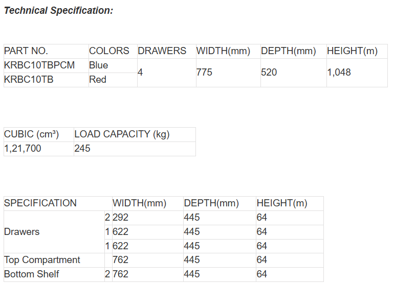 At Vishnu Auto Connect, we supply authentic KRBC10TBPCM 4-Drawers Flip-Top Roll Carts with assured quality and delivery across Telangana, Tamil Nadu, Karnataka, and Andhra Pradesh.
