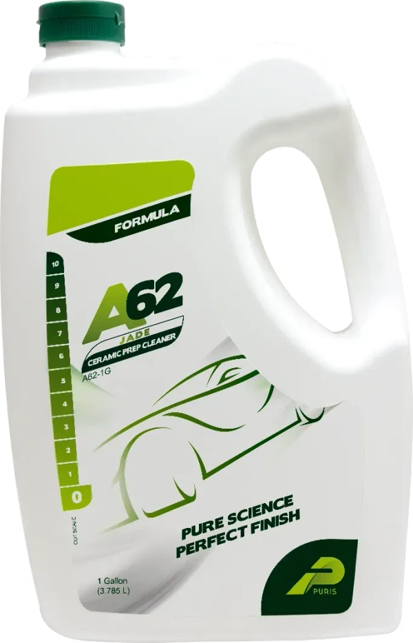 An innovative blend of surfactants, specialty cleaners and isopropyl Alcohol that will safely remove waxes and oils from compounding and polishing. A62 also increases the integrity of the molecular bond that occurs when applying sealants and coatings. A62 demonstrates good foaming properties, which provides a layer of lubrication between the painted surface and microfiber towel without leaving behind any residual film. A62 also works well as a glass cleaner.