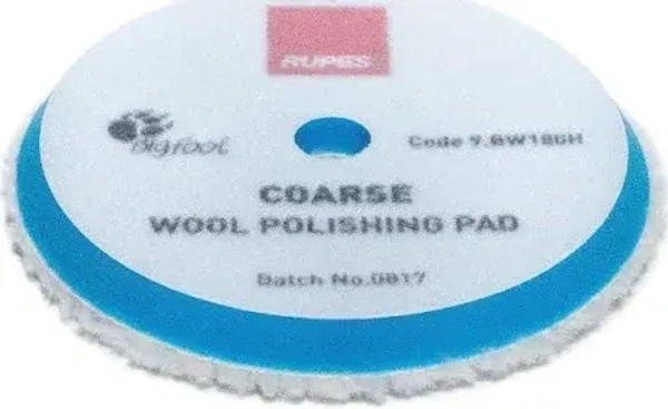 The coarse wool polishing pads for random orbital, gear driven, and triple action, are especially designed for severe paint defect removal. The blue foam of the coarse wool pad is more rigid and dense which maximizes the translation of tool movement to the work surface, providing increased cutting power.